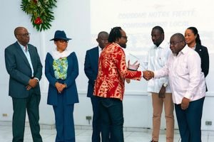 Haitian stylist David André was honored by the Ministry of Commerce and Industry, receiving a distinction alongside other professionals working in the fashion sector in